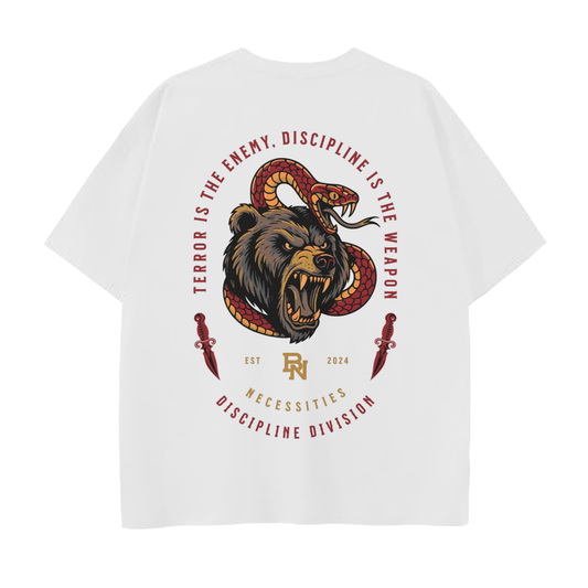 Every piece features bold artwork and powerful mantras designed to push you past fear and doubt. From roaring bears and coiled serpents to sharp symbols of resilience, the Discipline Division stands as a reminder that discipline is the weapon against chaos.